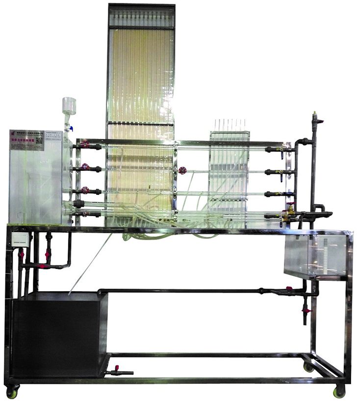 移動式不銹鋼實驗臺、儲水箱;雷諾測試管;伯努利測試管;沿程阻力系數(shù)測試管;突擴、突縮測試管;閥門局部阻力系數(shù)測試管;孔板流量計測試管;文丘里流量計測試管;和皮托管測試管;測壓板直接顯示總水頭線和測壓管水頭線;壓力傳感器24套、流量傳感器4套、溫度傳感器1套、觸摸屏、測壓板。