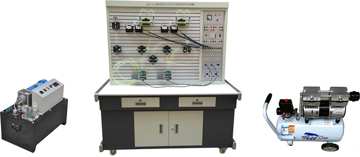 該實驗臺為鐵質雙層亞光密紋噴塑結構。美觀大方,堅固耐用,操作方便。基本配置為:氣動實驗元件1;氣動實驗PLC控制模塊1套;低噪音空壓機1臺;液壓實驗元件1套,液壓實驗PLC控制模塊1套;液壓實驗泵站1臺。(計算機根據(jù)學校要求另行配置)