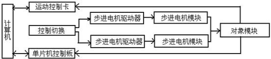 二維運(yùn)動(dòng)控制實(shí)驗(yàn)平臺(tái)主要由步進(jìn)電機(jī)控制系統(tǒng)和電腦桌兩部分組成,結(jié)構(gòu)框圖如下圖所示: