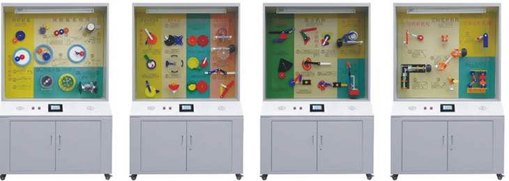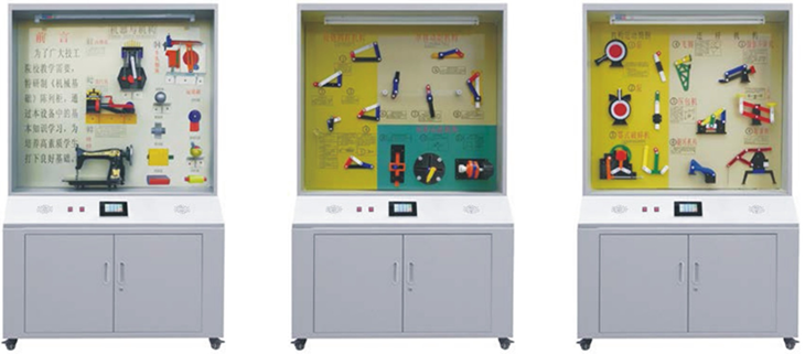 《機械原理》示教陳列柜是根據大、中專院校、技校、職業學校的機械原理教學大綱設計的電化教學設備。演示形象逼真,運行可靠,制作工藝美觀,使用本陳列柜可提高教學效果,節約學時是一套現代化機械課程教學應用實驗室設備。