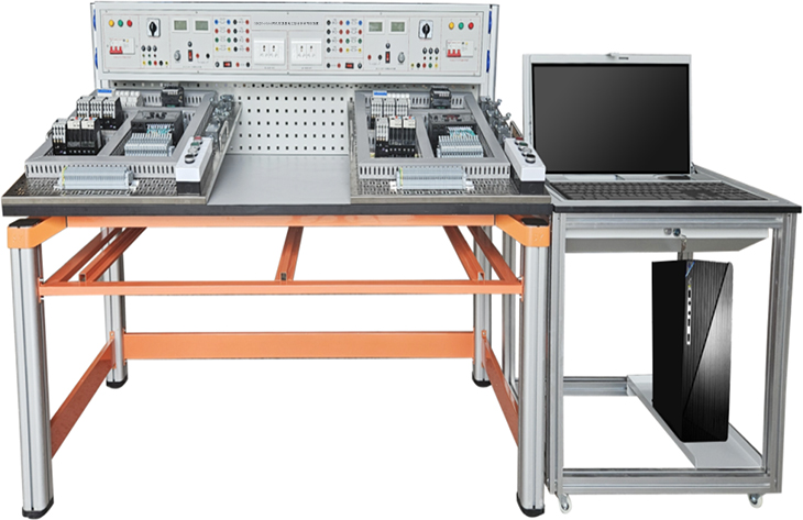 PLC實訓臺 (兩工位)、系統是集培訓、實訓、考核為一體的多功能設備。適用于各類院校、企業職工職業培訓的教學培訓、實操考核。該設備采用模塊化組合設計,主要由三大部分組成,包括網孔板實訓套件、智能控制技術操作平臺、電腦桌等組成。